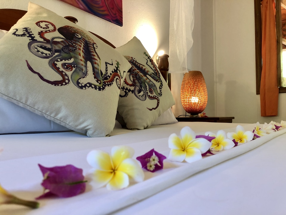 The chalets at Bois D'Amour are built from wood in the typical Seychelles style. The houses (Kokover, Kokorouz, Kokoleo) are named after coconut varieties. Bois d'Amour is located in the heart of La Digue, approximately 5 minutes by bike to the nearest beach. The chalets are surrounded by local fruits, flowers and birdlife but small shops and the typical takeaways are easily accessible. Bicycles can be delivered directly to the chalet, boat trips and guided hikes can also be organized. Breakfast may be ordered ahead and is served on the private veranda. Bois D'Amour is relaxed and close to nature- ideal for simple living, slowing down and experiencing the untouched nature of the Seychelles. A property full of tropical island charm.