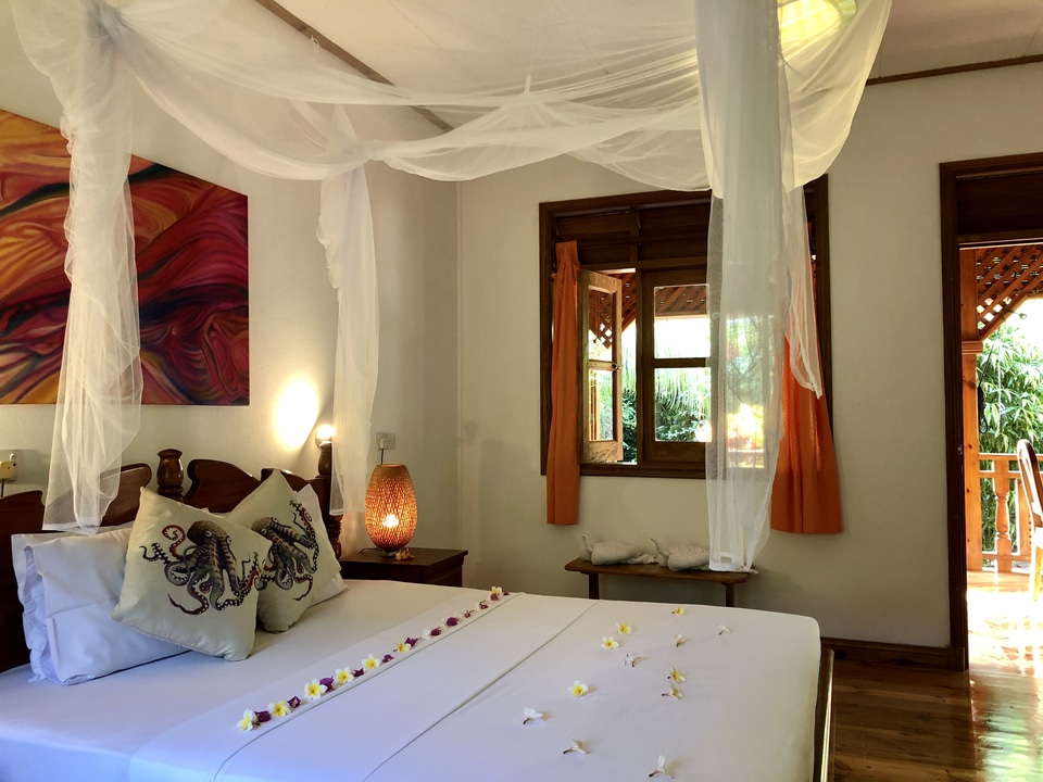 Experience genuine island life with traditional wooden architecture and decor that reflects the relaxed spirit of La Digue.